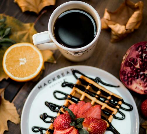 In our shops we serve Coffee with syrup waffle or Freshly baked Croquettes or Frikandel !